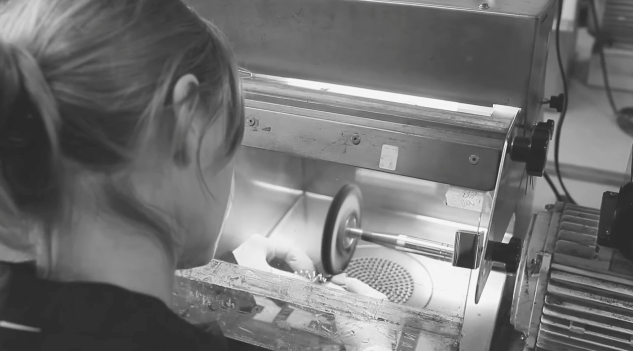 Grazie alla lucidatura a spazzola le superfici d’oro dei gioielli Nanis sono sempre rifinite in modo perfetto. Per realizzare queste superfici lucenti occorrono mani sapienti e delicate. Mani in grado di misurare la pressione delle dita per lucidare con tocchi lievi e precisi le superfici piccolissime dei nostri preziosi. Occorre tanta perizia ed esperienza per saper scegliere la pasta abrasiva più appropriata tra le 7 disponibili e la spazzola giusta tra le 20 spazzole che servono, e saperla affrontare con l’angolazione giusta e la pressione misurata per non alterare la forma originale del gioiello.