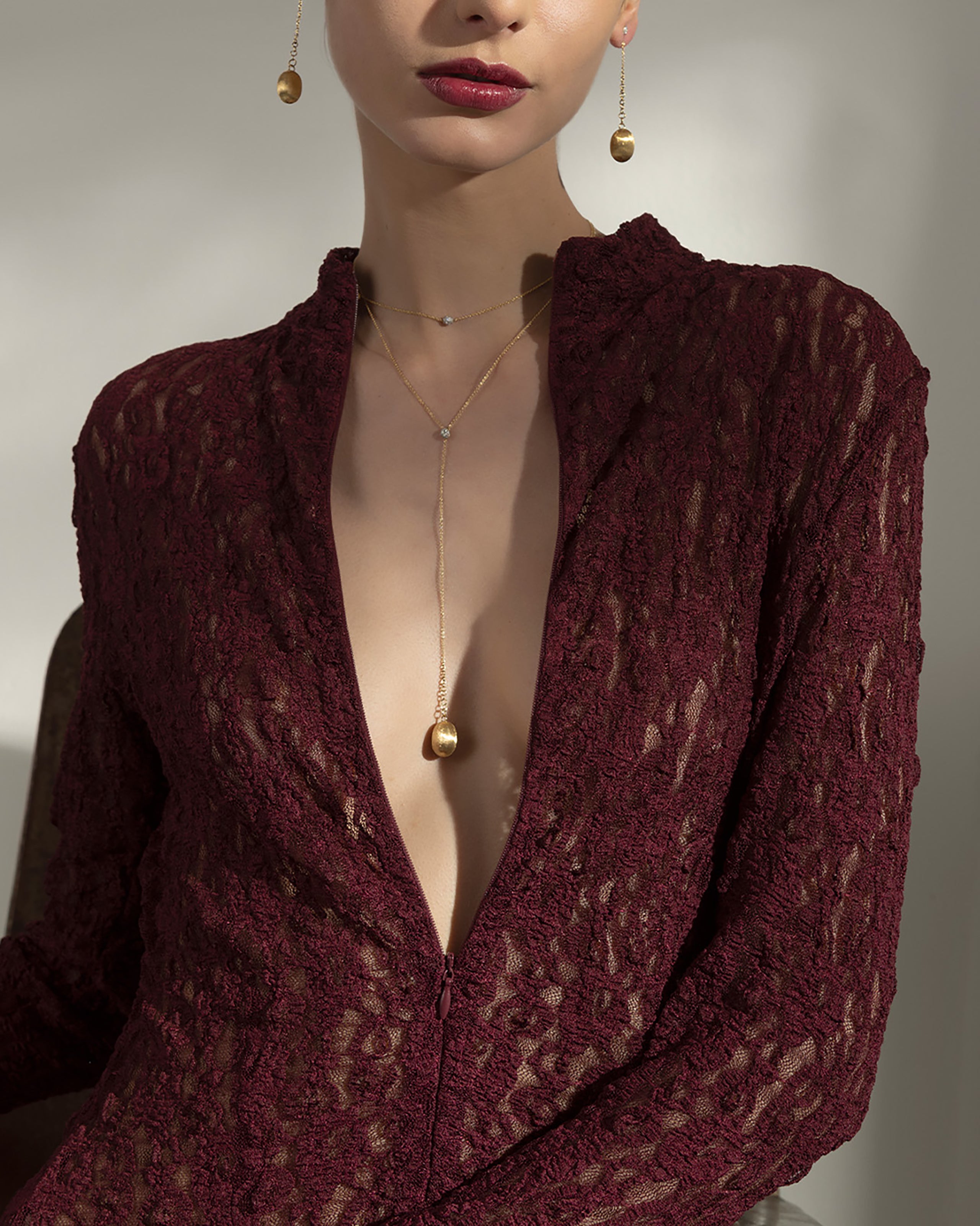 Esplora l'eleganza senza tempo delle collane Nanis, realizzate artigianalmente in Italia, con oro 18kt, diamanti e pietre naturali come Acquamarina, Ametista e Rubino. Lasciati sedurre da girocolli, choker e collane con pendenti: abbina i diversi modelli per look unici e sofisticati, adattabili a ogni momento della tua giornata.
