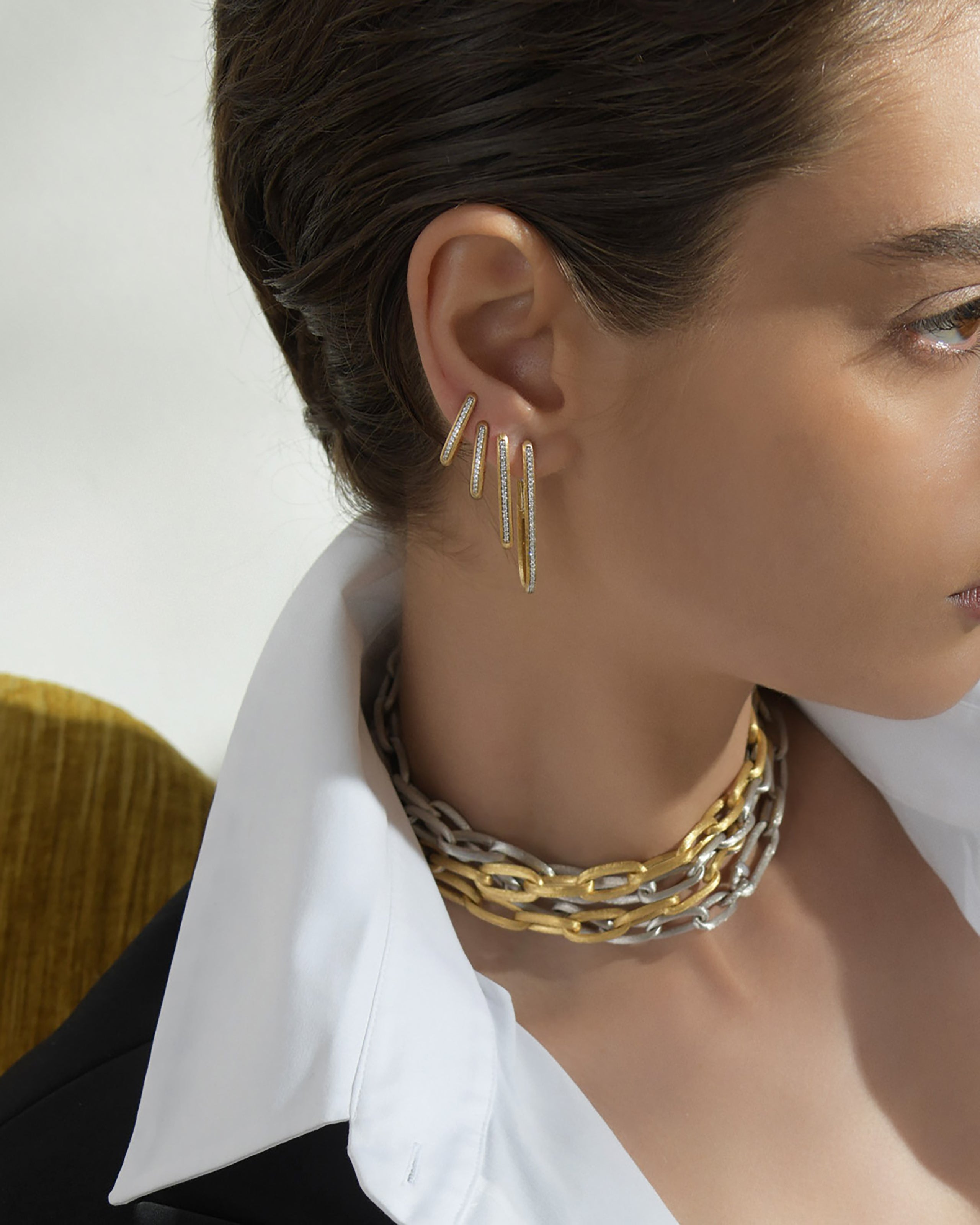Scopri la versatilità degli orecchini Nanis, perfetti per ogni occasione. Da orecchini a lobo o a cerchio, ai pendenti e agli ear cuff, ogni modello è realizzato in Italia in oro 18kt, diamanti e pietre naturali. Esplora la collezione e abbina diversi stili per un look unico e raffinato.