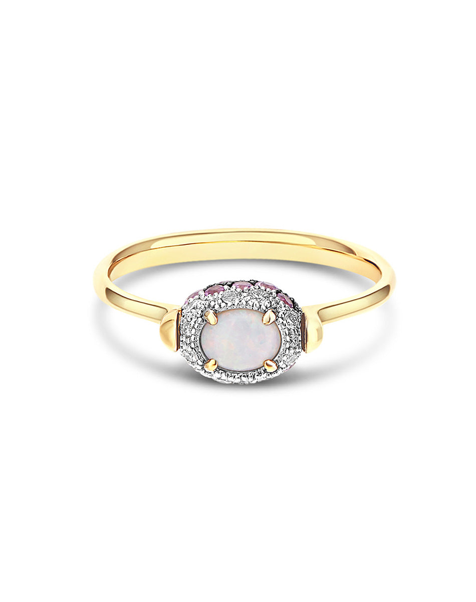 リング "Reverse Baby" ダブルフェイス ゴールド、ピンクサファイア、ルビー、オーストラリアンホワイトオパール、ダイヤモンド