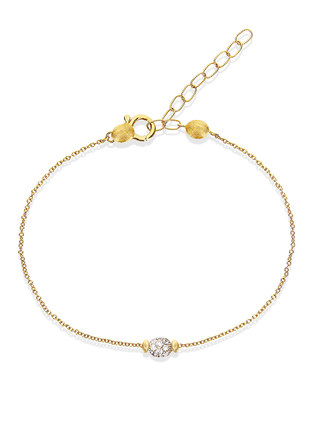 Bracciale in oro 18kt con una delicata boule di diamanti, interamente realizzato a mano nel nostro atelier vicentino. Minimale e glamour allo stesso tempo, questo è il gioiello che non può mancare nel porta gioie di ogni donna, perfetto da indossare sia da solo, che abbinato ad altri bracciali per un look più contemporaneo.