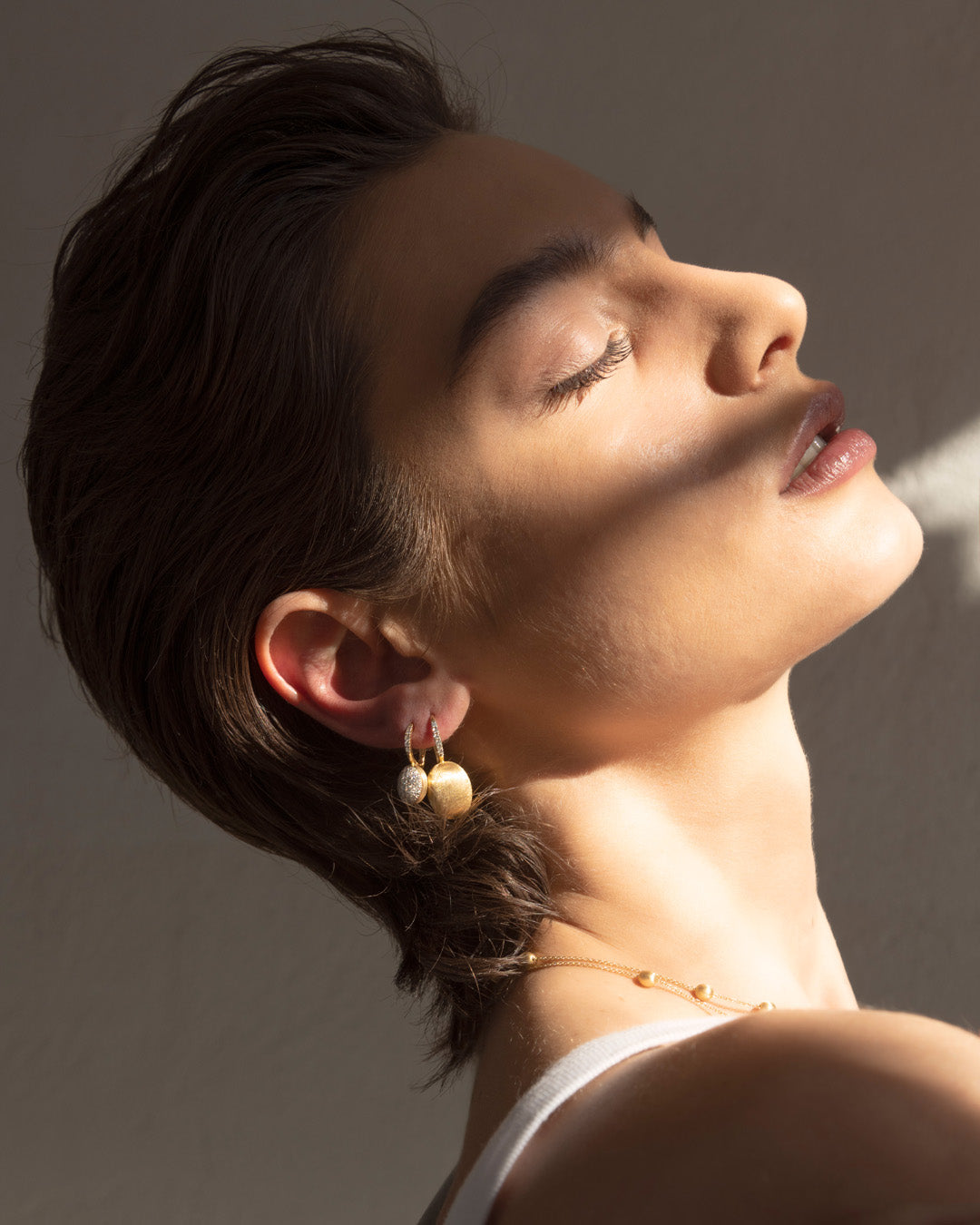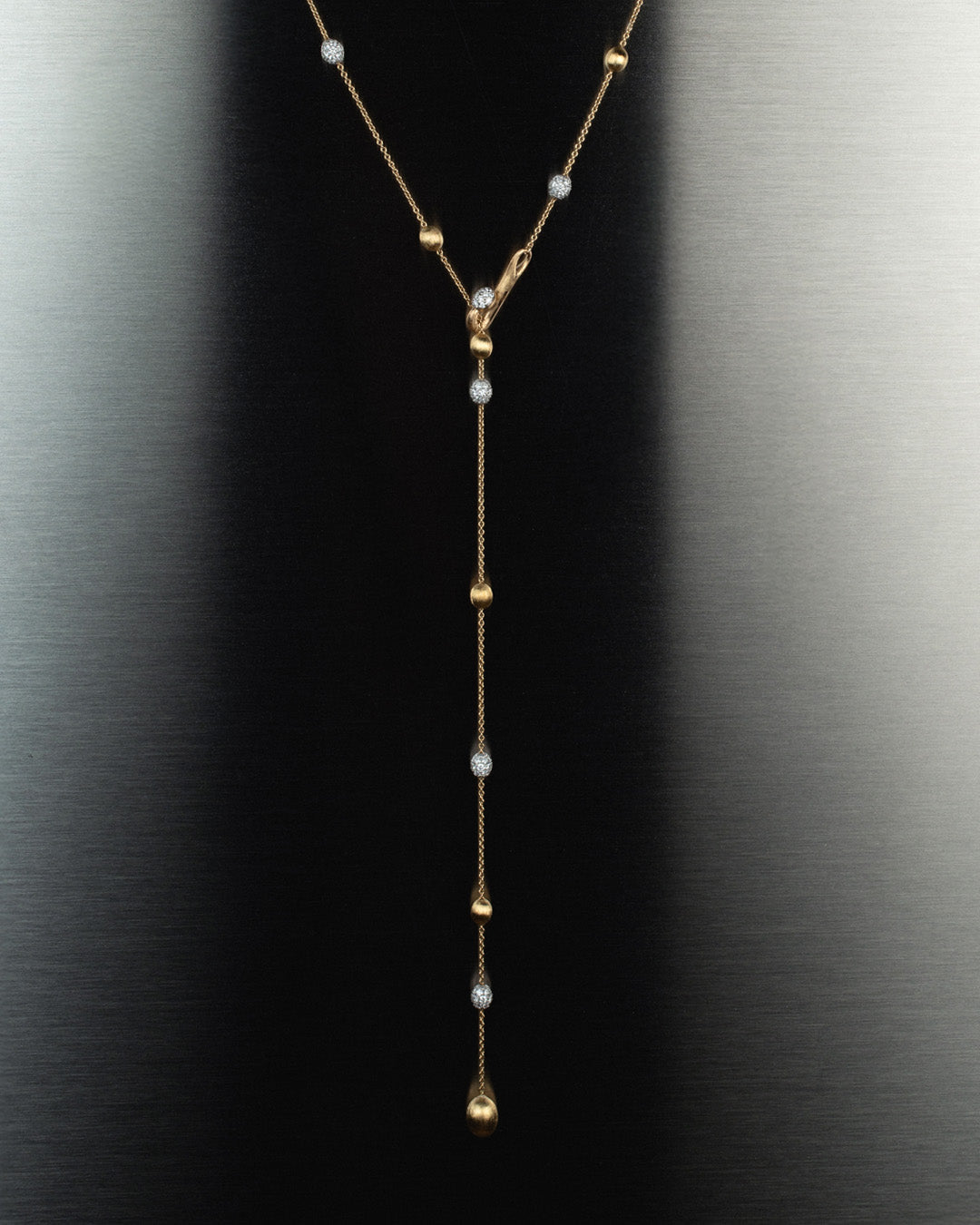 Boules in oro 18kt si rincorrono in questa collana fresca, contemporanea e contraddistinta dalla nostra immancabile versatilità. La chiusura ad amo coronata da un raffinatissimo dettaglio in diamanti, summa di estetica e funzionalità, si apre e chiude come una molla, consentendo di regolare ed interpretare la collana nei più svariati modi. A voi la scelta tra un’interpretazione più morbida e classica, allacciando la chiusura a una delle boules finali, o più trasgressiva, optando per una versione più accollata. Un gioiello versatile, leggero e capace di adattarsi a tutte le vostre sfaccettature!
